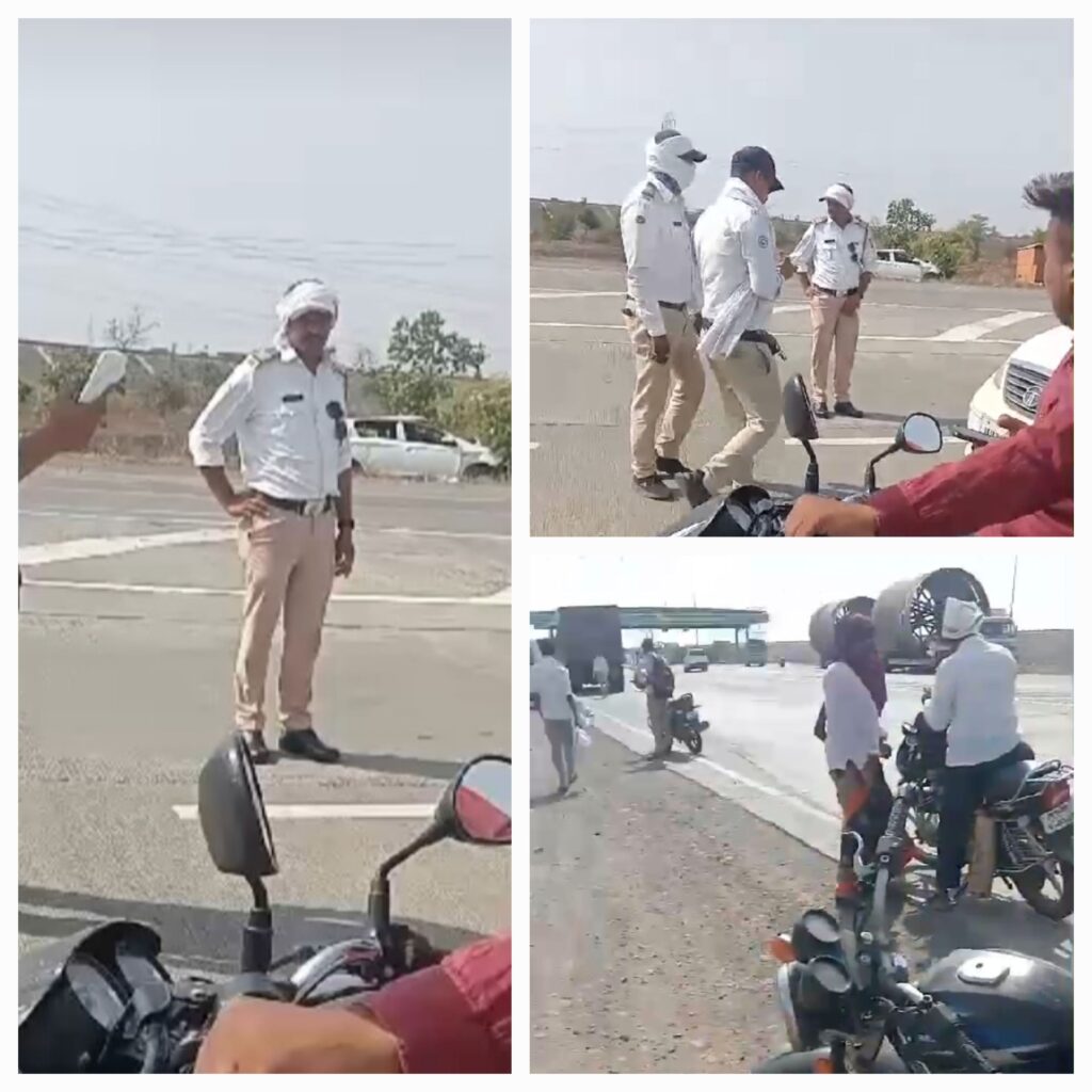 स्थानिक शेतकऱ्यांना शेतात जाण्यासाठी हेल्मेट, लायसन नसल्यास 10500/-चालान देतो. साले तुम्ही सुधरत नाही. तोडपाणी करा नाही तर भरा कोर्ट मध्ये जाऊन पैसे अशी ताकीत देत सुरु आहे दबंग गिरी.