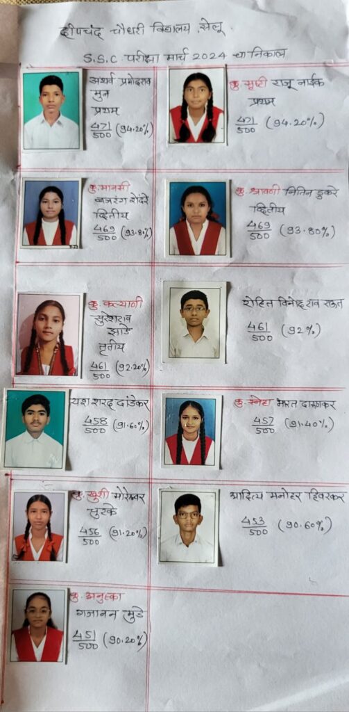 सेलू दिपचंद चौधरी विद्यालय दहावीचा निकाल